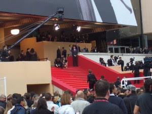 De plus en plus difficile d’apercevoir les stars sur le tapis rouge ! Mais bonne initiative : la montée de marches est retransmise sur un écran géant, plus facile quoique moins naturel pour les photos !