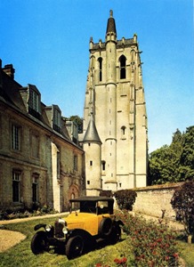 carte postale du musée – Citroën 5 CV 1923 et la Tour Saint-Nicolas de l’Abbaye (photo issue du catalogue 1984)